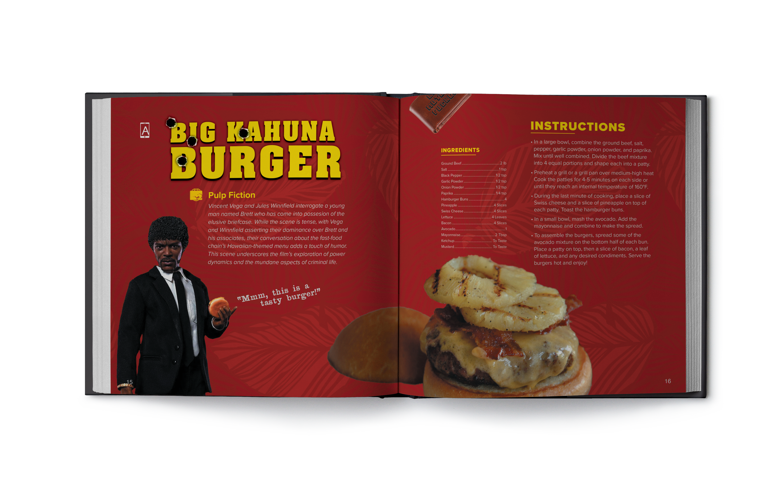 Step into the deliciously cinematic world of Quentin Tarantino with Pulp Kitchen. This one-of-a-kind cookbook is filled with recipes inspired by some of the most iconic food scenes from Tarantino’s films. From the Big Kahuna Burger in “Pulp Fiction” to Apple Strudel in “Inglourious Basterds”, you are bound to discover a dish you’ve seen on the big screen. But that’s not all - with Artivive, select recipes come to life with cooking videos that let you see how the dish is made. Whether you’re a Tarantino fan, a foodie, or both, Pulp Kitchen is the perfect addition to your cookbook collection. With Pulp Kitchen, you’ll have everything you need to create unforgettable dishes that pay homage to Tarantino’s films.